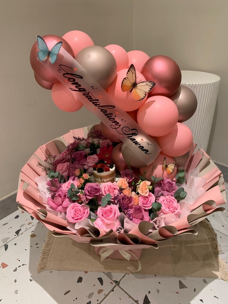 باقة مميزة مكونة من عدة الوان متناسقة من الورود الطببعية